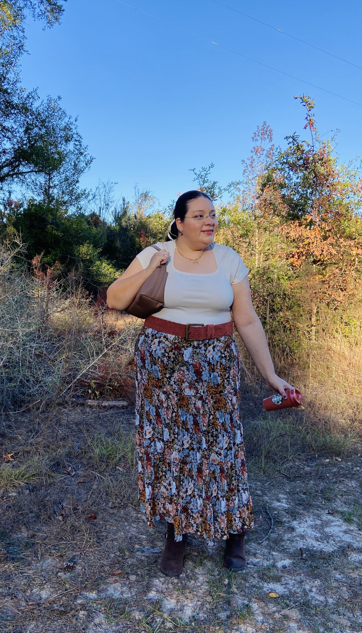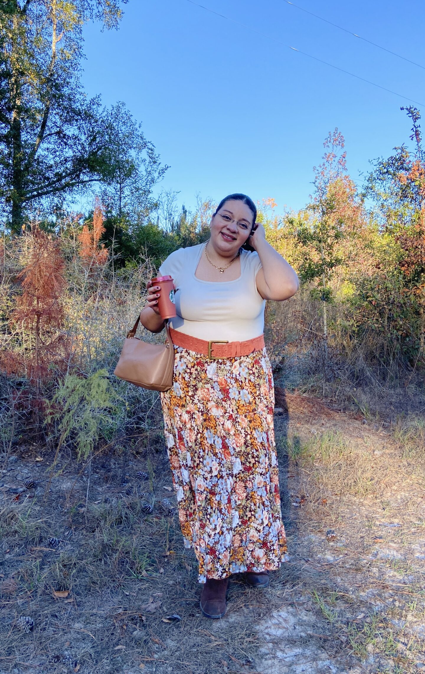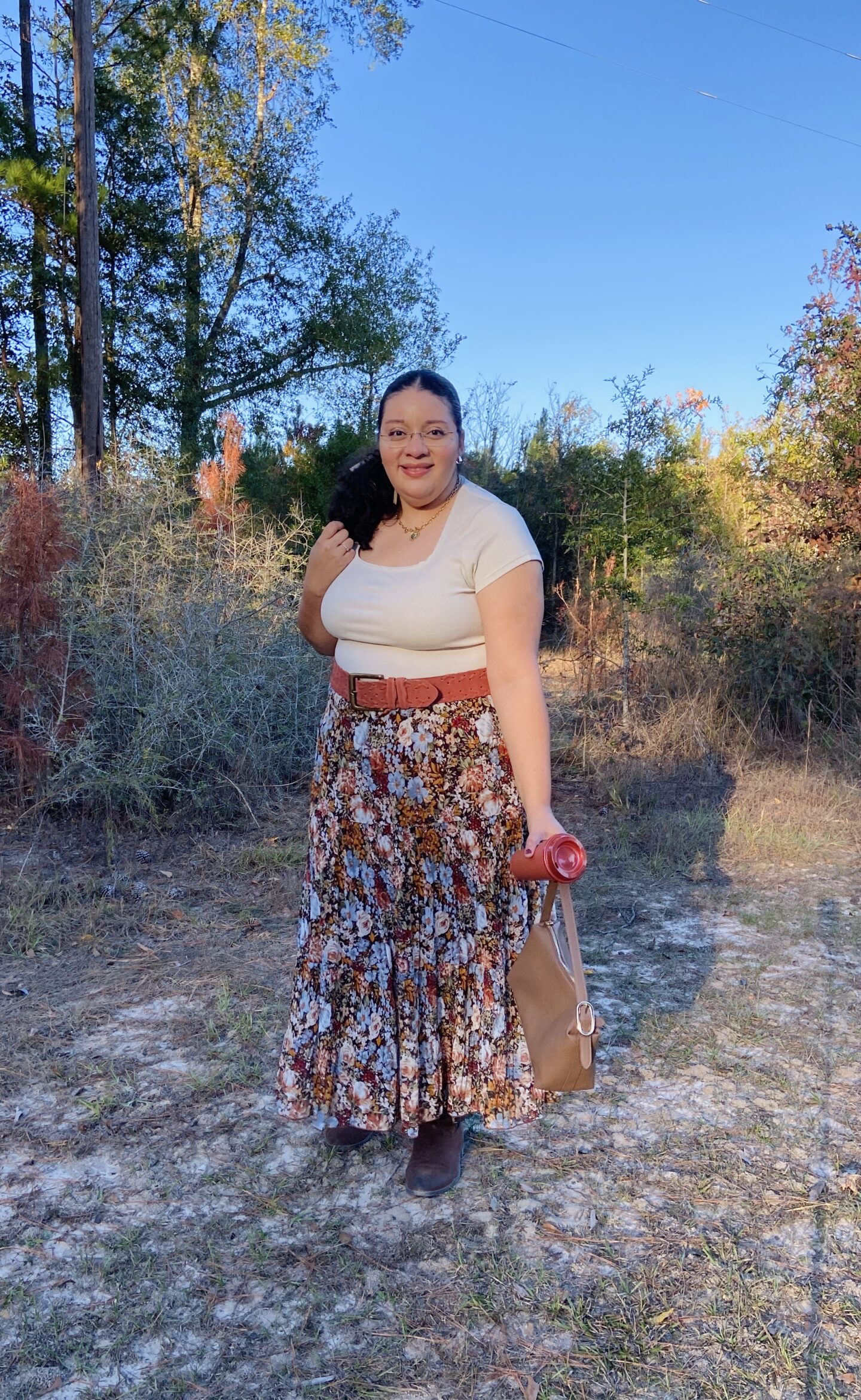 If you’ve been eyeing the viral Amazon chiffon maxi skirt, Thanksgiving is the perfect time to style it. Flowy, feminine, and photo-ready — it’s the kind of piece that moves beautifully and makes a statement without trying too hard. You can wear it with almost any kind of top. Just add a belt to cinch your waist in and make a statement.