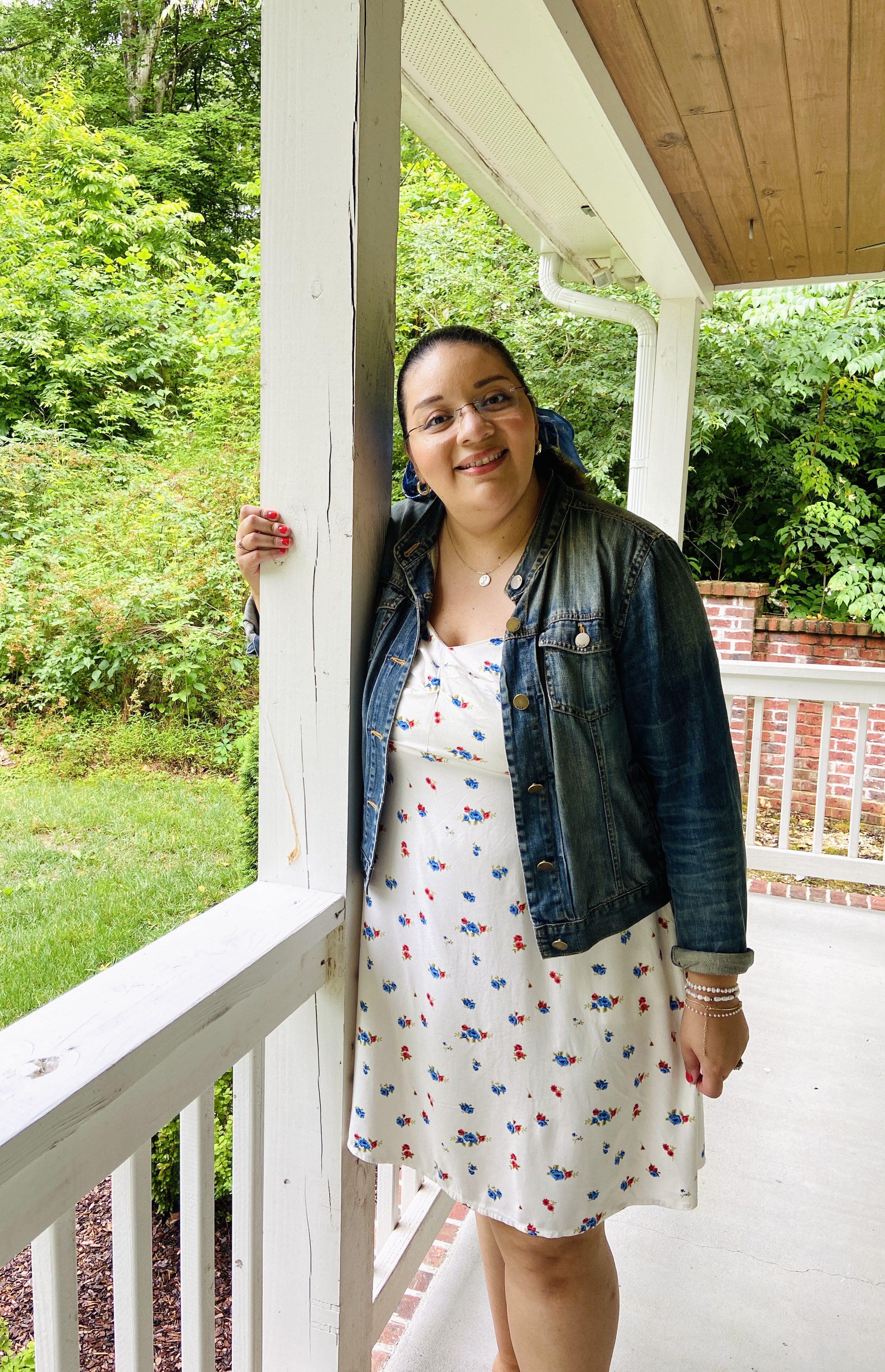 A breezy mini dress is perfect for hot July weather. Add some comfortable sandals and a blue jean jacket—or go bold with patriotic statement earrings. This is a simple yet striking option for a family BBQ or a town festival.
