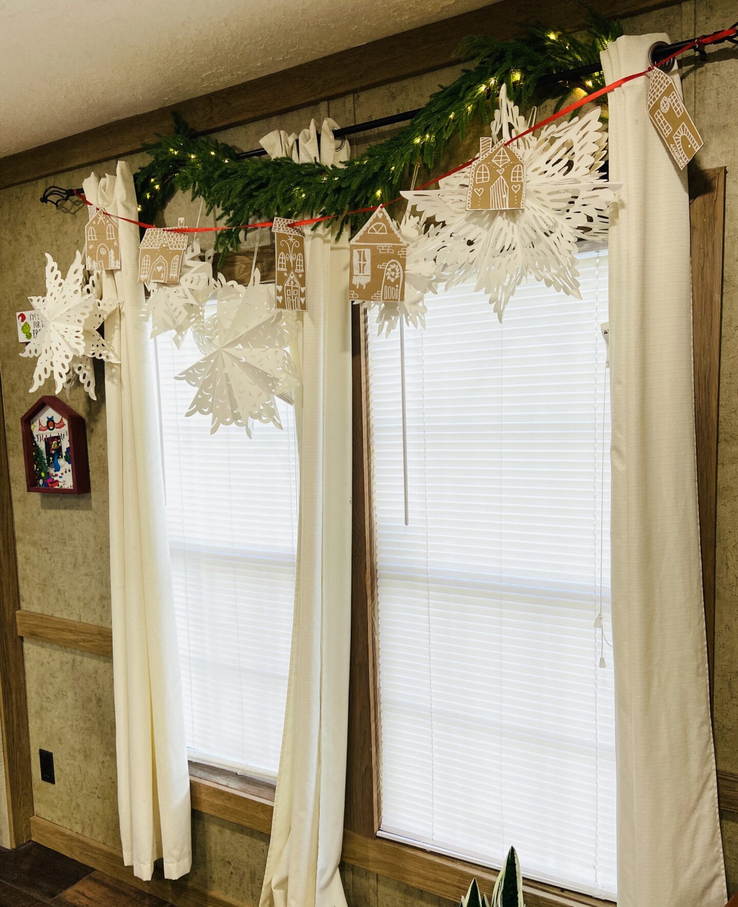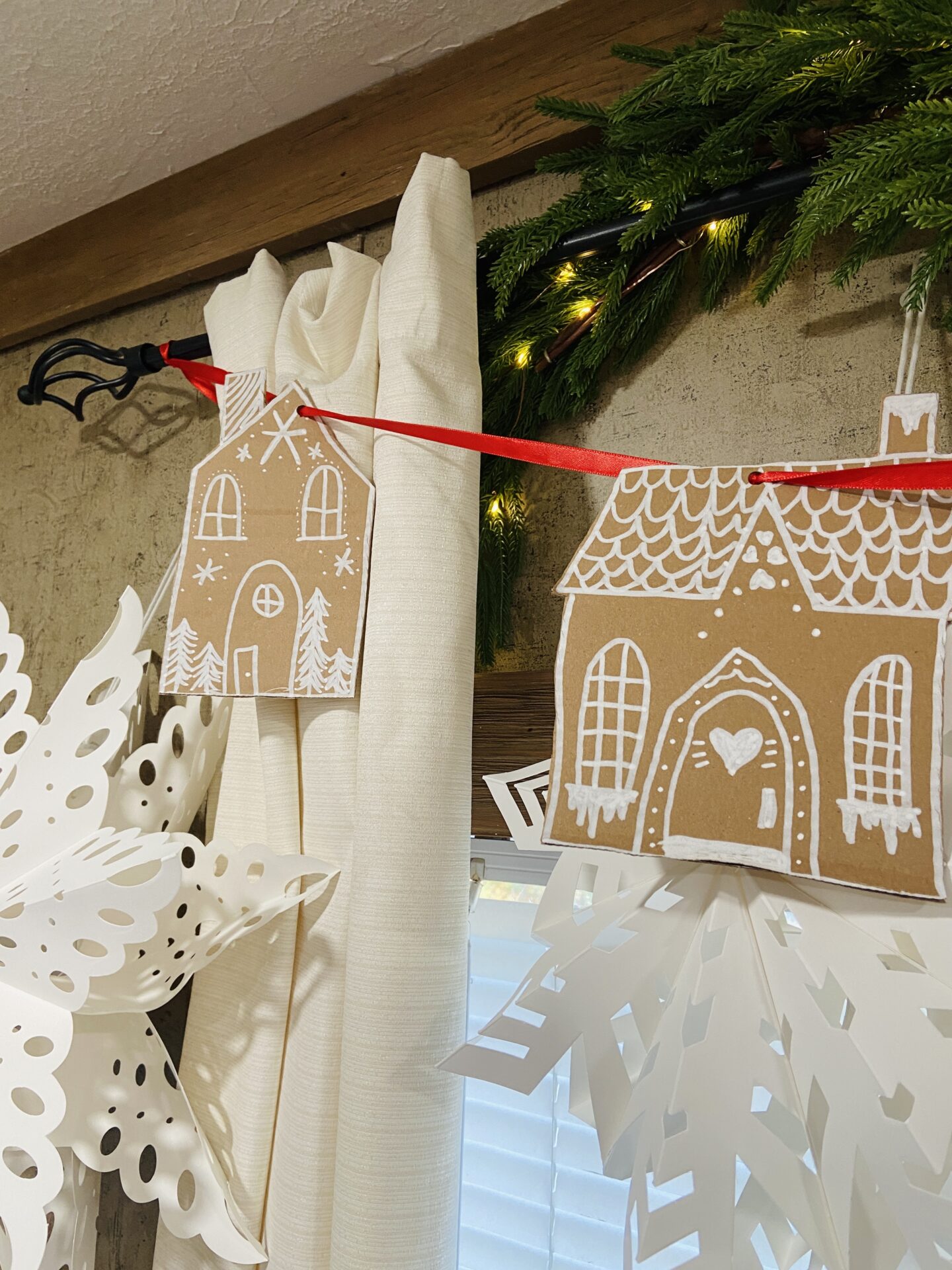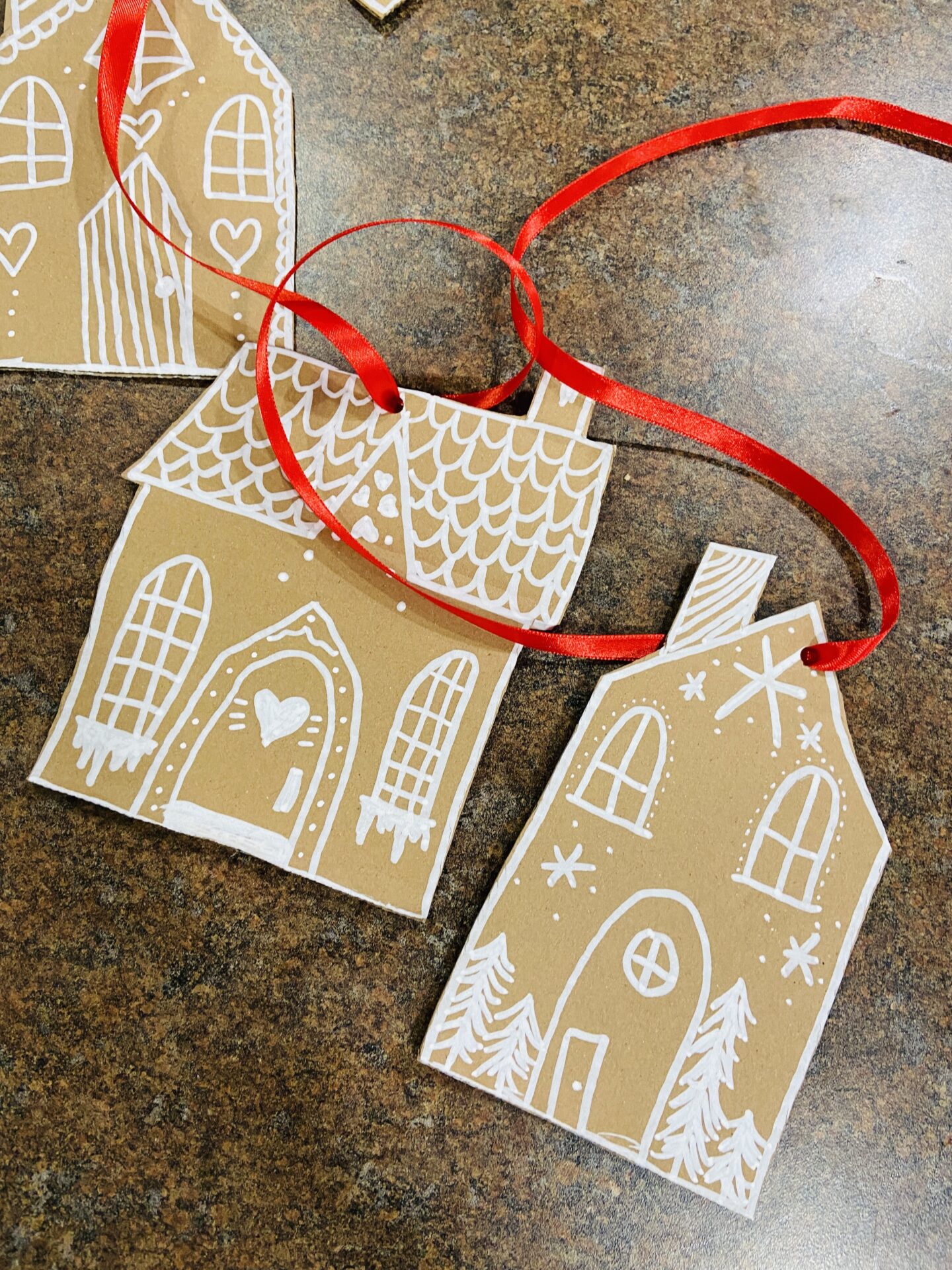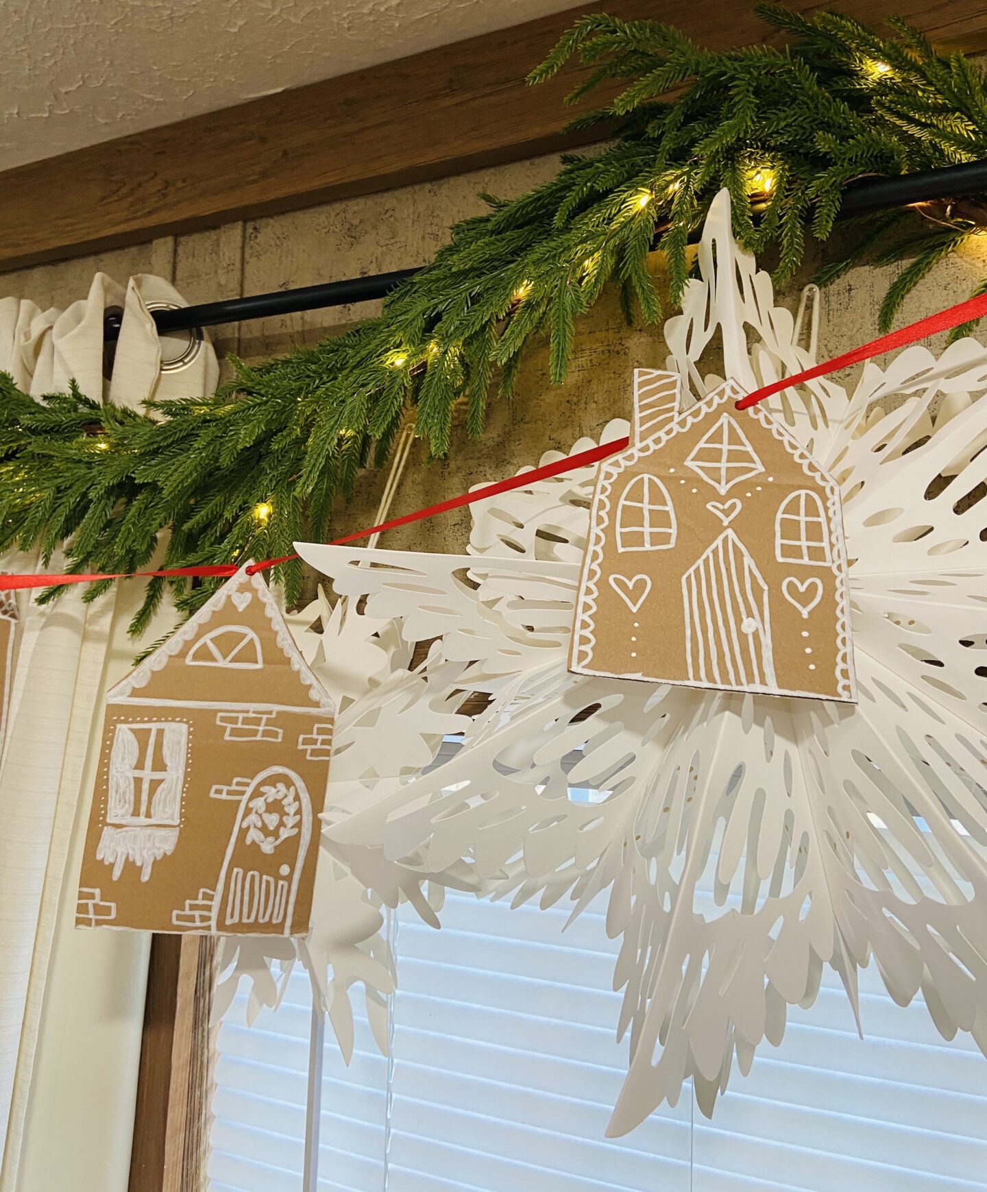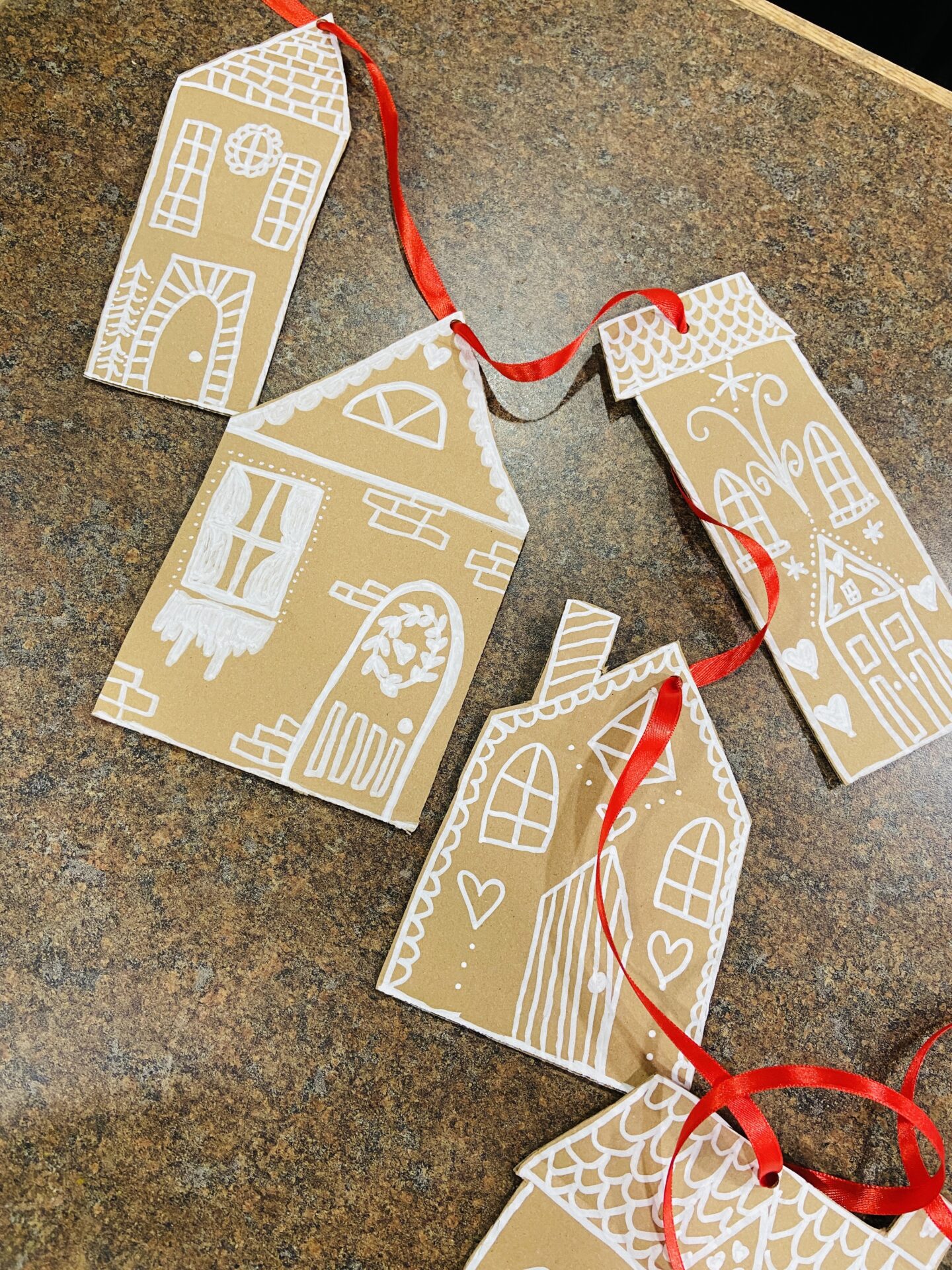 Feel free to display your houses on their own or punching holes in the top of them and stringing some ribbon through them to create a garland.