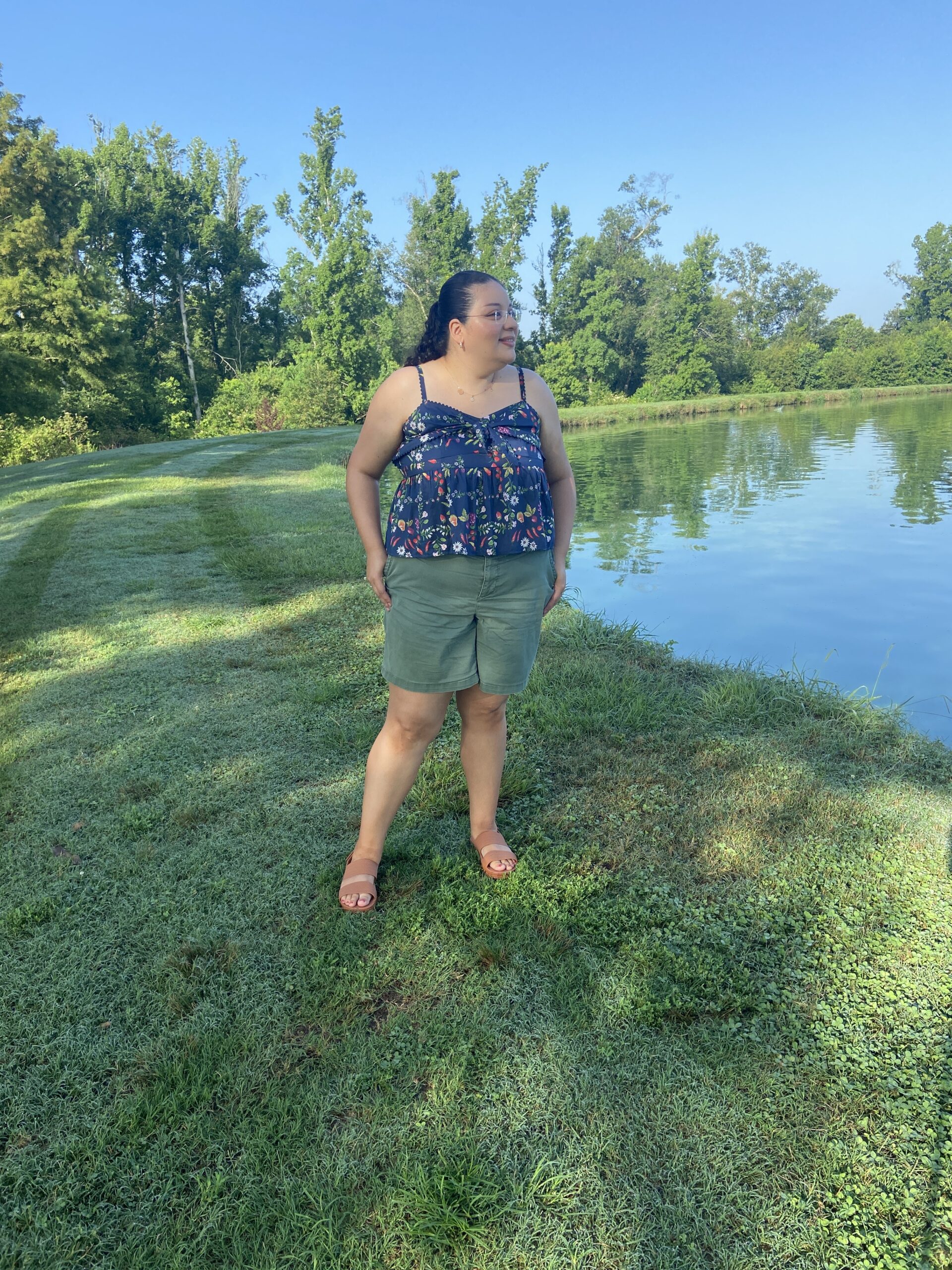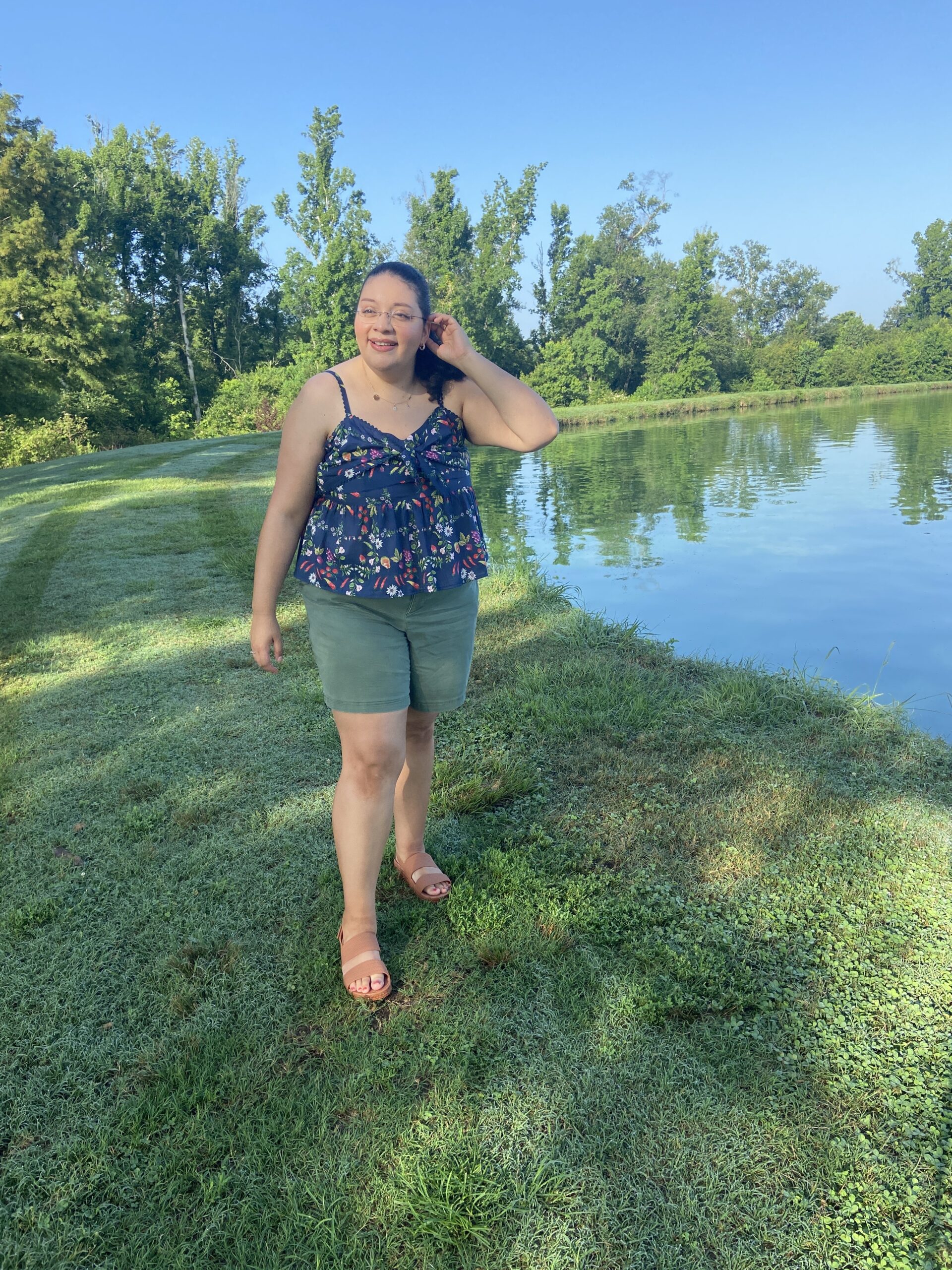 The Old Navy Fit & Flare Floral Peplum Top offers a charming blend of comfort and style, making it a comfortable choice for summer. It features a knotted sweetheart neckline and adjustable straps, providing a customizable fit. The smocked back adds flexibility, while the peplum hem creates a flattering silhouette that accentuates the waist. The fruit print adds a playful touch, perfect for warm-weather outings. Designed to hit high on the hip, it pairs well with some high-waisted shorts or pants.