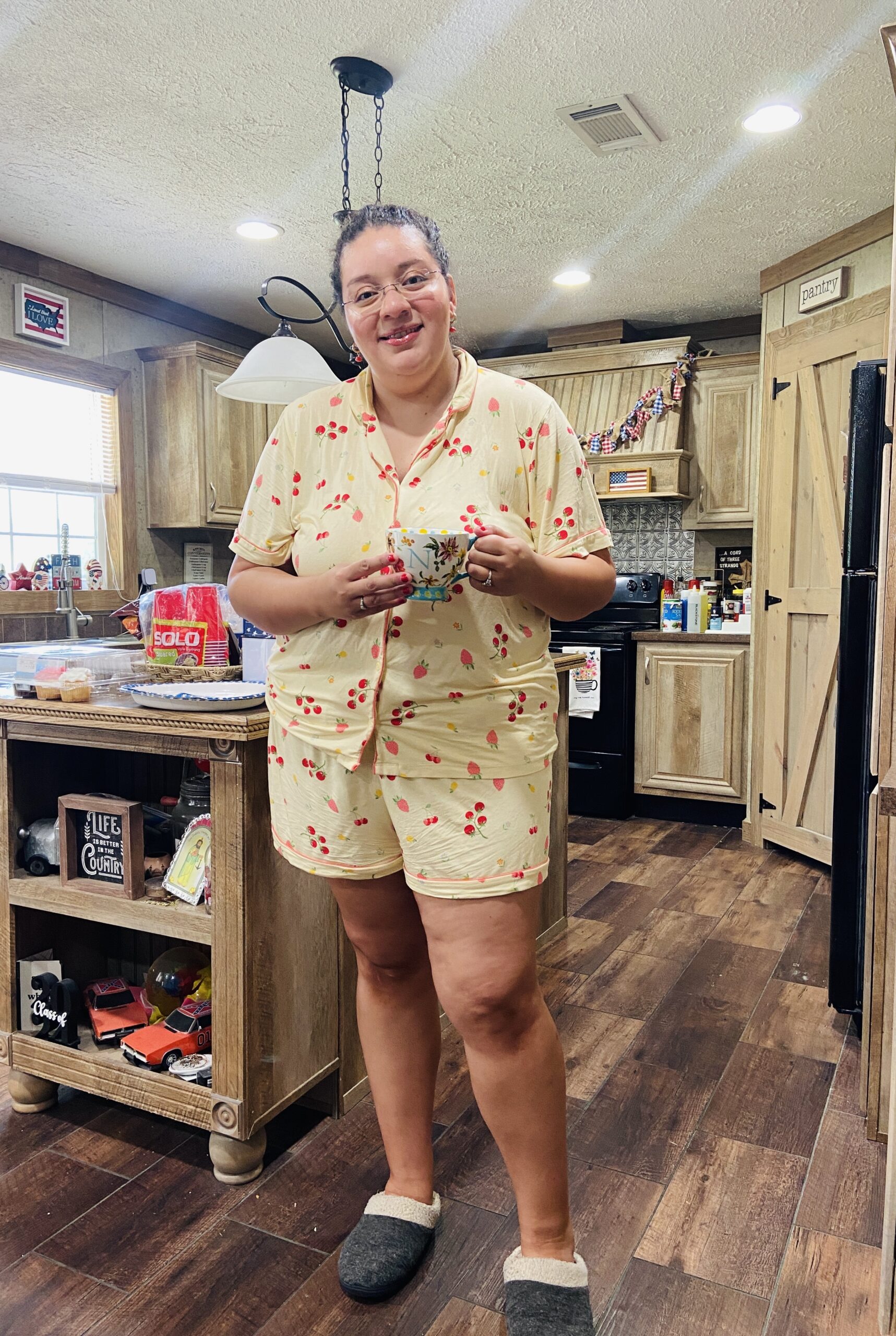 It’s just not summer without some cute pj’s and this short set from Old Navy truly delivered when it came to the fruit-inspired trend. This pajama set features a relaxed-fit, short-sleeve button-up top with a spread collar, paired with elastic-waist pull-on shorts. Because it’s crafted from a soft blend of 95% rayon and 5% spandex, the fabric is breathable and stretchy, ensuring ease of movement and comfort throughout the night. Plus, the fruit pattern is so darn cute, how could you resist?