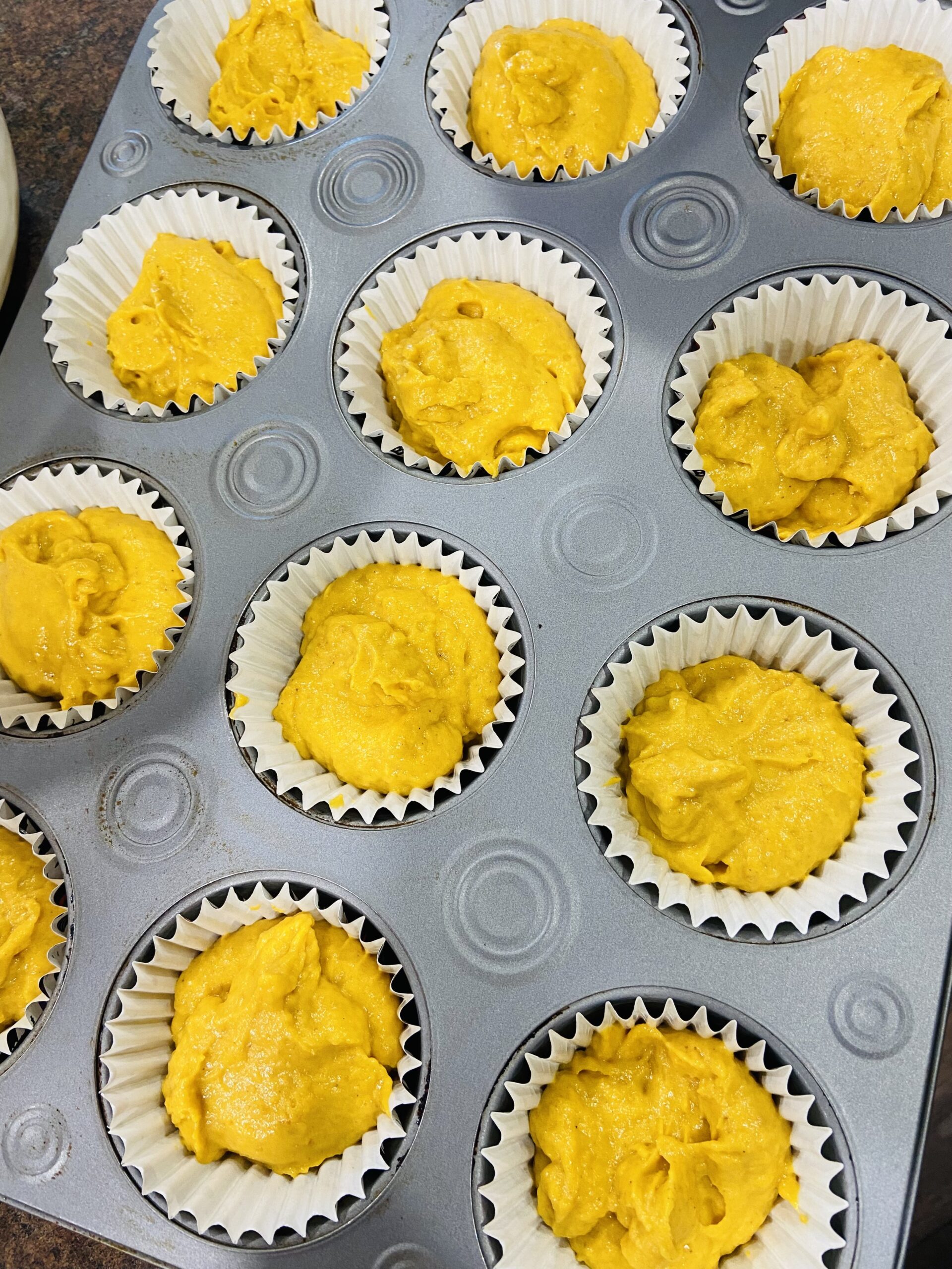 My second tip is simple – instead of using 4 oz. of cream cheese – spring for an 8 oz. I found that by doubling the amount of cream cheese, I didn’t run out when I was topping the muffins.
